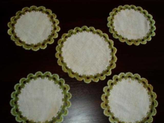 Penkios lininės servetėlės,apmegztos vašeliu (už visas 4€)