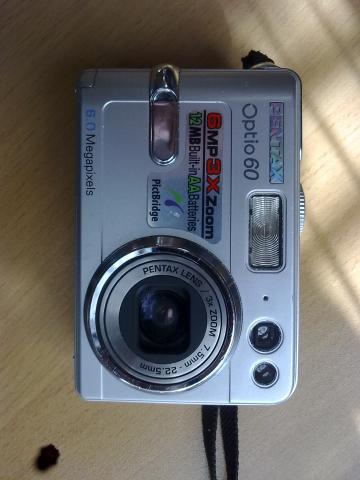 Skaitmeninis fotoaparatas Pentax Optio60, 6 MP, 3XZOOM, 12MB, AA-baterijos.+ deklas ir dokumentai.