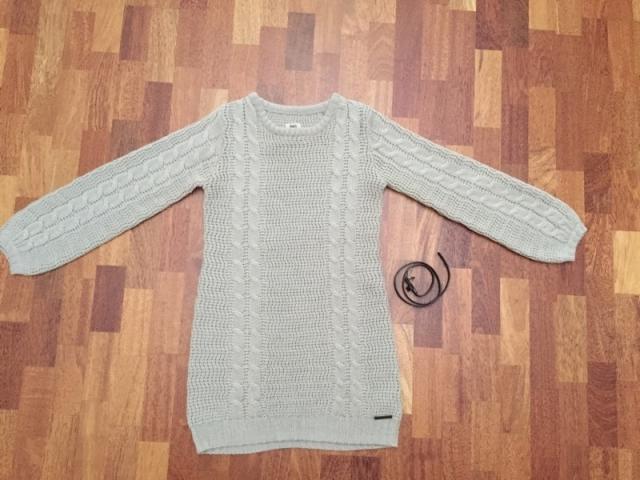 Pepe Jeans megzta suknelė. Minkštutė, labai jauki. Ilgis 89, plotis 43. Tinka ir su dirželiu ir be. Sudėtyje - vilna.