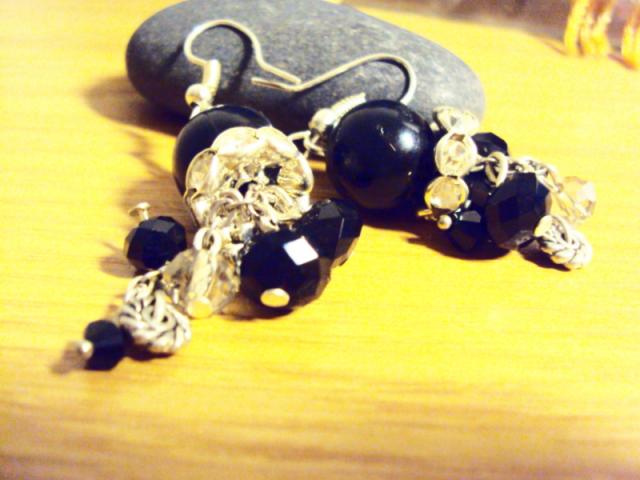 Grazus ir mieli, neilgi auskariukai, su juodu perliuku ir svarovski deimantukais bei ivairiomis puosmenelemis