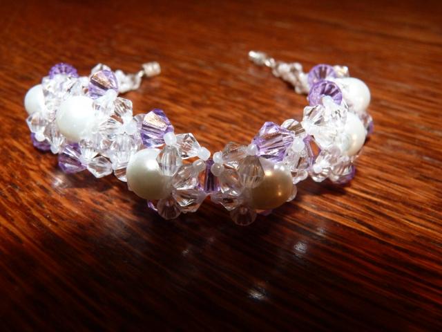 Baltų stiklinių perliukų apyrankė, skirta plonas rankytes turinčioms panelėms :)