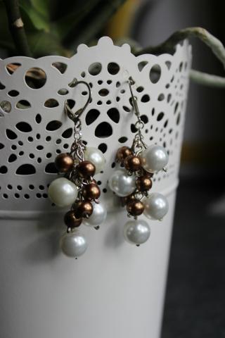 Rankų darbo perliukų ryšulėlis su sidabriniais užsegimais. Bendras ilgis 6 cm.