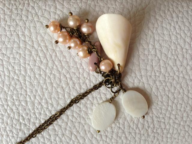 Perlų ir kriauklių pakabukas su ilga grandinėle / Capari(mano rankų darbo)