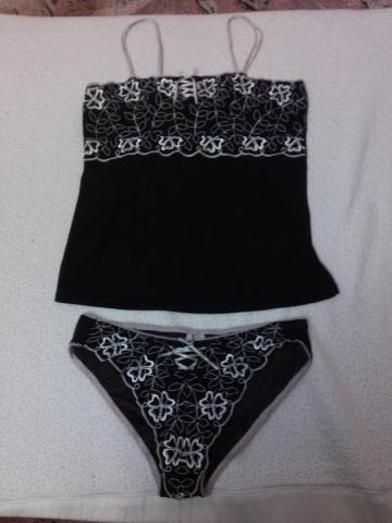 Seksualūs apatiniai su nėriniais ir išsiuvinėti. Juodos ir šviesiai rausvos spalvos. Ldydis