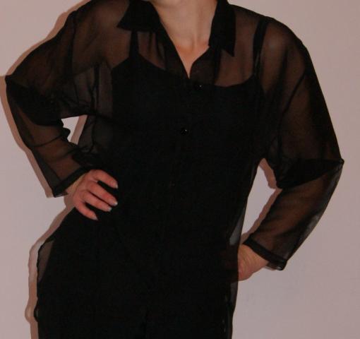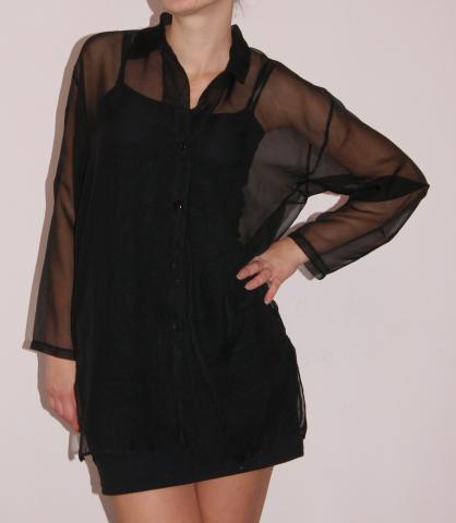 labai dailus permatomi marskiniai, dydis sakyciau M/L. modalio dydis nesiojamas S, taigi galima priderinti visaip, reikia tik truputeli vaizduotes ir atrodysi su siais marskinukais isskirtinai ir pritrenkenciai :) uzsideti buvo vieninteli karteli :)
