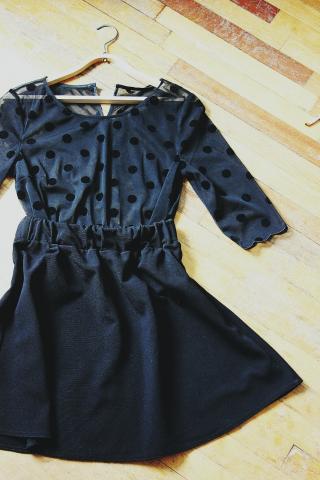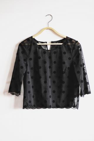 Nuostabi, rafinuoto ir jaukaus stiliaus palaidinė su aksomo detalių - apskritimų raštu. Rankovės 3/4, papuoštos gražaus apsiuvimo linija. Puikiai atrodo tiek prie sijono, tiek prie kelnių, priderinama įvairioms progoms. Palaidinės buklė kaip naujos, vienintelis smulkus vidinis defektas - nukirptos etiketės. Norint, kad palaidinė būtų labiau prigludusi prie kūno, rekomenduočiau M dydį nešiojančioms, bet pati nešioju S- S/M ir tiko.