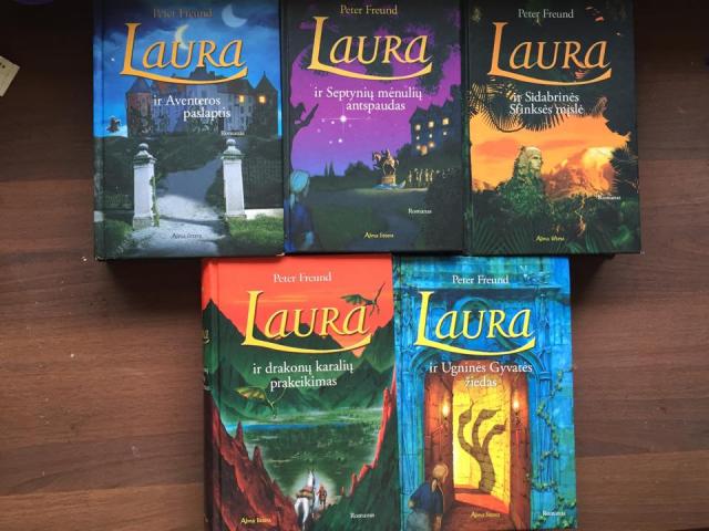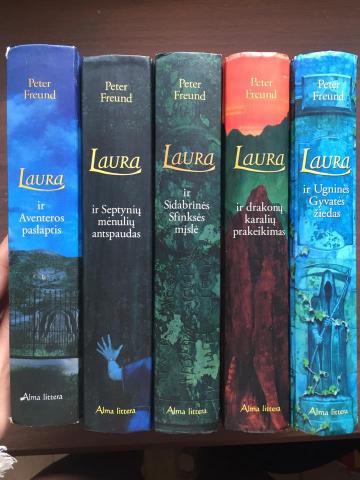 Knygos, aišku, skaitytos. Truputį nusidevėjusios. Perkant visas iš karto parduodu už 12eur. Peter Freund "Laura ir Ugninės Gyvatės žiedas", "Laura ir drakonų karalių prakeikimas", "Laura ir Sidabrinės Sfinkses mįslė", "Laura ir Septynių mėnulių antspaudas" ,"Laura ir Aventeros paslaptis".