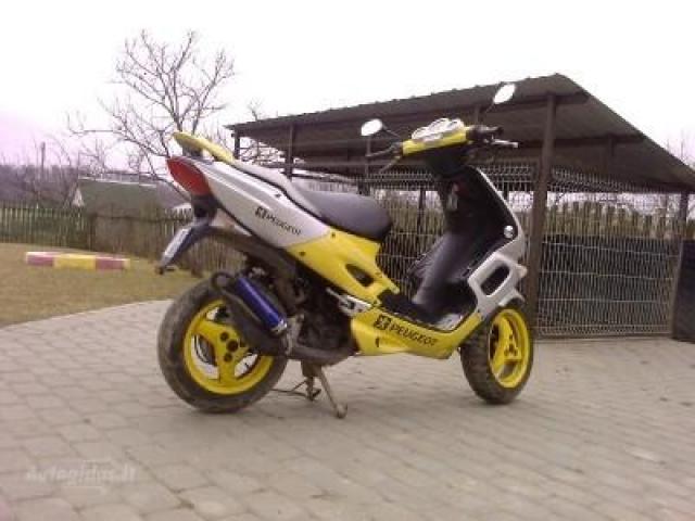 Parduodamas geras Peugeot Sf motorleris . Kosmetika labai gera. Variklis be jokiu defektu. 49 CC ,MAX. greitis 95 kmh ,Kuro sanaudos apie 4 L -100km. Kuriasi gerai . Skysciu ausinamas. Yra ideta audio aparatura stiprintuvas ir dvi koloneles atsparios dregmei. Labai tvarkingai padaryta ,isvesti jungikliai apaaturai ijungti. Motoroleris tikrai vertas savo kainos . Yra dokumentai .