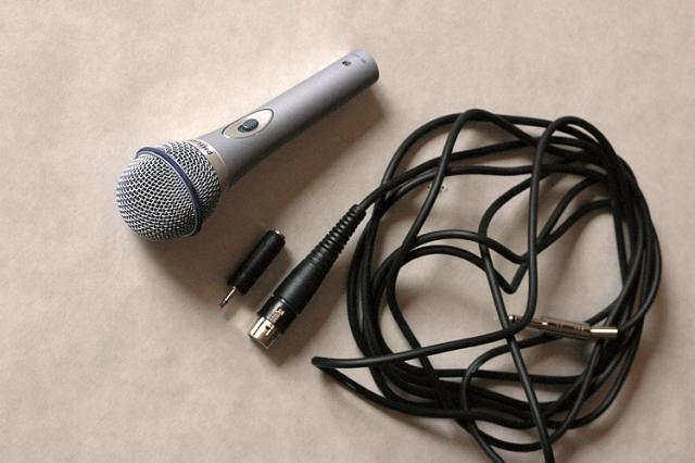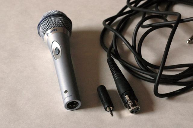 Tvirtas metalinis Philips mikrofonas su laidu ir antgaliu. Beveik nenaudotas.