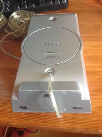 Dvi Philips namų kino kolonėlės veikiančios. Atrodo, kad ne priekinės jos, o galinės. Ir viena ir kita kolonėlė su ilgais laidais. Ant vienos kolonėlės laido yra kyštukas, ant kitos kolonėlės nėra. Stovis puikus. PARDAVIMO KAINA SUTARTINĖ.