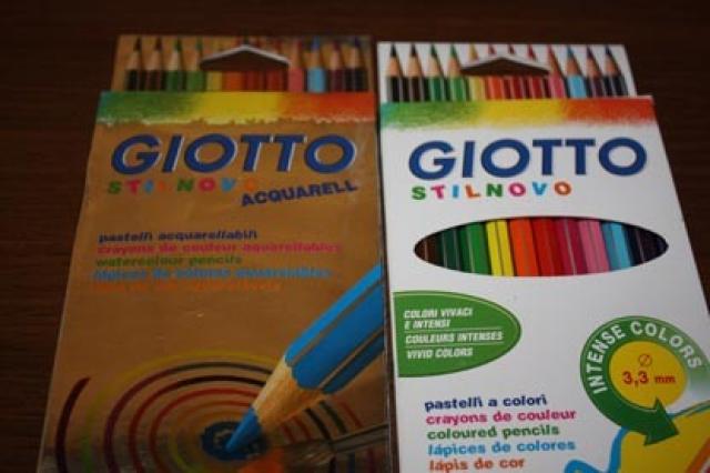 Nauji pieštukai. 1. Akvareliniai, skirti piešt ant šlapio akvarelinio popieriaus, arba ką nors nupiešus palieti vandeniu. 2.Paprasti pieštukai. Abejuose dėžutėse po 12 vnt.