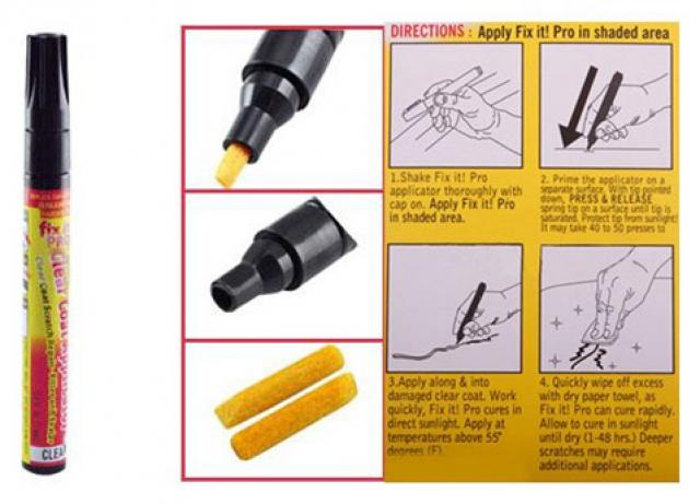 Pieštukas automobilio įbrėžimams naikinti Kelyje visiems vairuotojams pasitaiko įvairių nesklandumų. Kad jų nebijotumėte, mes turime puikų pasiūlymą – pieštuką automobilio įbrėžimams naikinti. Pieštukas greitai ir efektyviai susitvarko su įvairiais įbrėžimais ant Jūsų automobilio. Tai naujas universalus būdas, šalinantis automobilio įbrėžimus ir smulkius defektus ant bet kokios spalvos automobilių. Aktyvi formulė, kurioje yra milijonai poliravimo mikrodalelių, užpildo pažeistą vietą ir atkuria pirminę aut