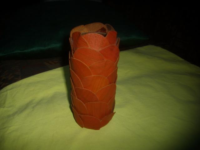 Piestukine stikline apklijuota oda -1 euras.Aukstiis - 14cm,Skersmuo- 4,5 cm,,