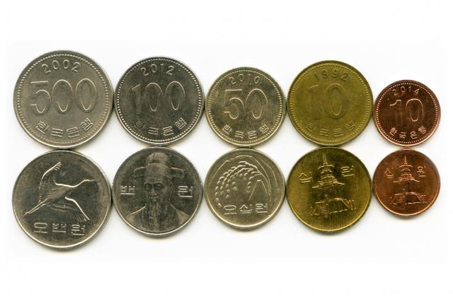 2 Pietų Korėjos monetų rinkinukai. Paskutinė moneta (nufotografuota tik iš vienos pusės) į komplektą neįeina. Parduodama atskirai. Kaina už vieną komplektą (5 monetos).