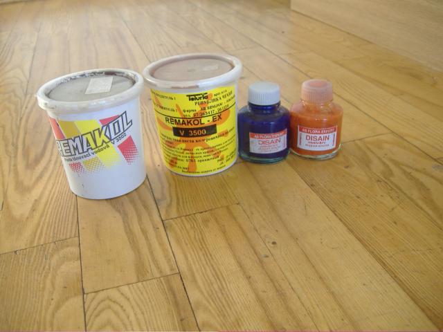 Remakol - vienas tamsiai rudas, kitas - šviesiai rudas, tose mažose bonkutėse - oranžinis ir violetinis pigmentai
