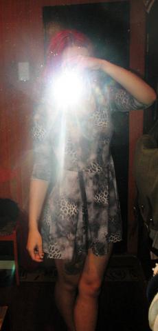 Labai daili trumputė suknelė. Vidutinio storumo trikotažas, pusinės rankovės, laisvai krentanti apačia. gavau iš draugės, bet kažkaip tik vieną kartą apsiregiau, tai nenioriu, kad liūdėtų nenešiojama :) gale buvo maža skylutė, bet dabar užsiūta Sorry, negaliu padaryt geresnės ft ant kūno