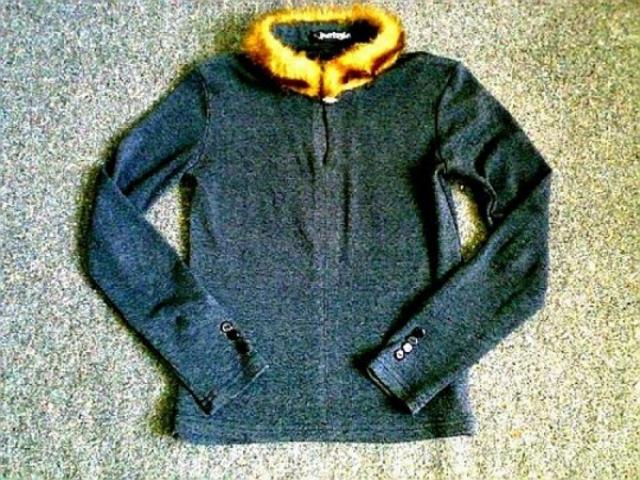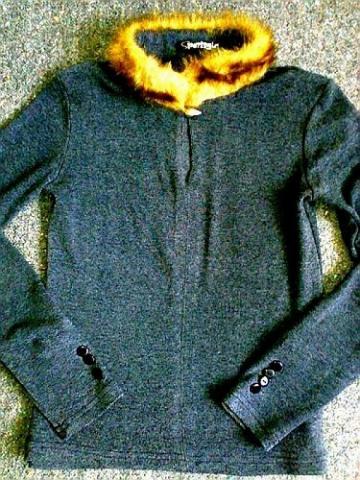 Pilka palaidinė su kailiuku, S dydis