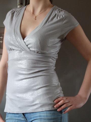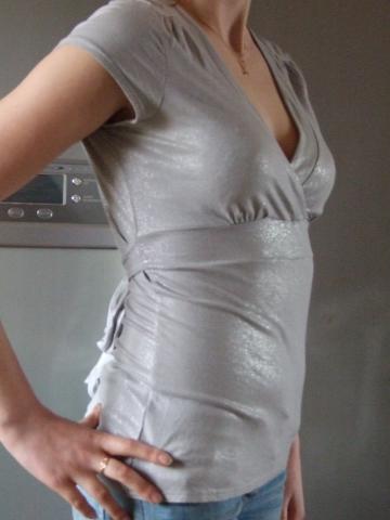 Medžiaga blizgi, gale susiriša juosta. Dydis kažkur 36-38 :)