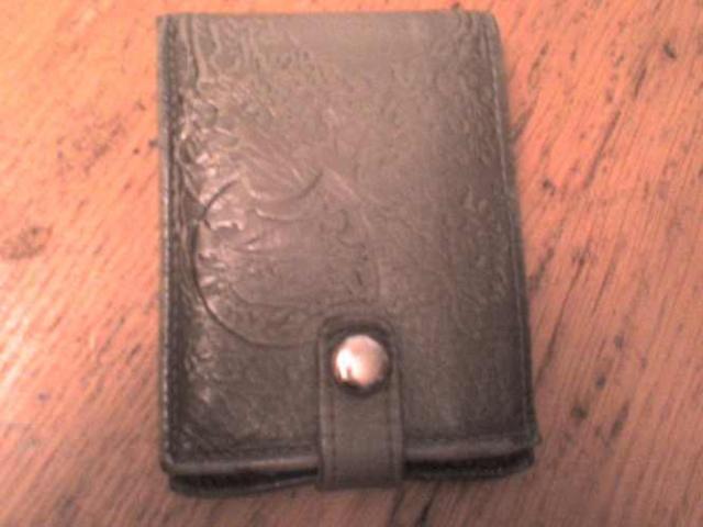Pilka piniginė, su keliais skyriais, manau patogi. vakare bus nuotrauka. Išspausti raštai ant jos