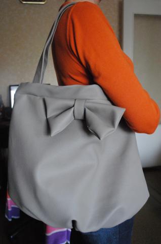 Pilka, talpi, rankų darbo, dirbtinės odos rankinė.