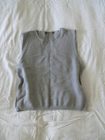 Trumpa vidutinio storumo trikotažinės medžiagos berankovė palaidinė.