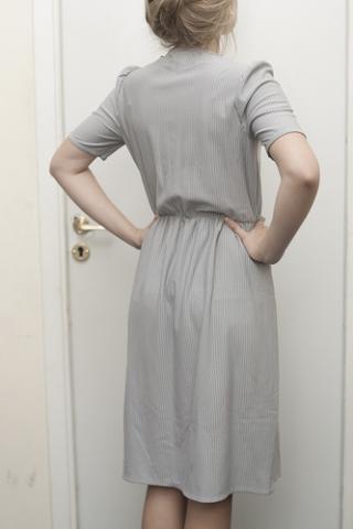 Idealios būklės senovinė pilka suknutė su kaspinėliu ir dviem sagutėm ties apykakle. Nors rašo 40 dydį, čia 38 labiau. Pirkau MD, bet taip ir neužsidėjau.