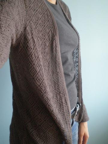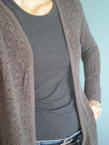 Pilkas ilgas megztinis. Ant M dydžio merginos atrodys taip kaip ant manęs, toks laisvas, taip pat manau, kad tiks ir L dydžiui. Rankovės megztinio kažkaip labai ilgos, tai aš pasiraitojau. Kai pirkau, buvo viena saga labai žemai, ji mane nervino, tai visai ją panaikinau, tad dabar visai be sagų. Jeigu yra klausimų, klauskite!