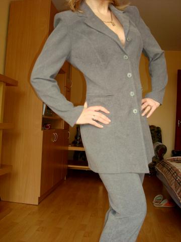 labai geras kostiumas minksta,dekinga,lanksti nesiglamzanti medziaga. svarkas liemenuotas peciai atitinka 38dydziui rankoves ilgis nuo pazasties 40cm visas svarko ilgis 77cm kelnes paaukstintu liemeniu,kas dabar labai madinga.tarp kitko kelnytes labai graziai atrodys su marskinukais kelniu klesniu ilgis vidine siule 77cm visas ilgis 107 liemuo 36.sagute galima persiuti tada liemuo padides iki 38cm siauros grazios kelnytes. PIRKTOS LIBANE PRESTIZINEJE PARDUOTUVEJE 100$