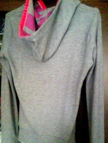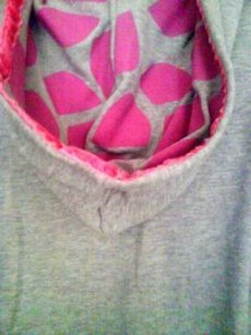 Pilkas megstinis su kapišonu.