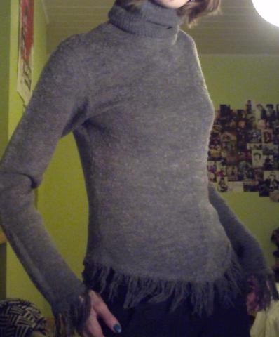 Aukštu kaklu, su kutais :) labai numylėtas, bet jau retai bedėvimas. Dydis maždaug S/M