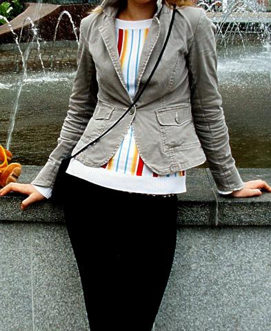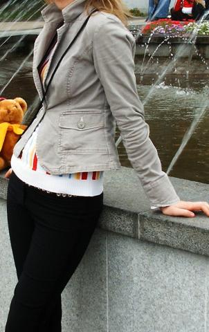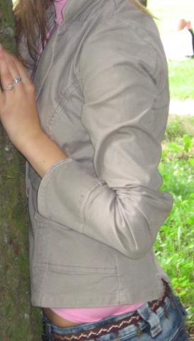 Švarkelis nešiotas, tačiau nenunešiotas :) Yra tikrai geros būklės, tik ant vienos rankovės vidinėje pusėje yra maža dėmytė, kuri neišsiplauna, tačiau apsivilkus jos nesimato :)