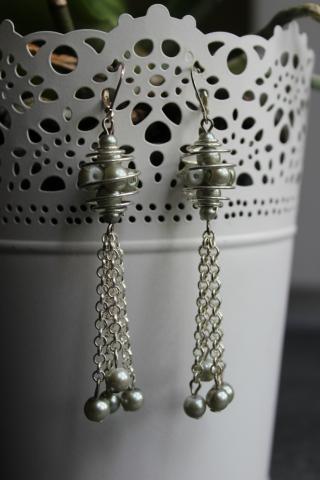 Pilki auskarai su sidabrinais užsegimais, bendras ilgis 8,5 cm.