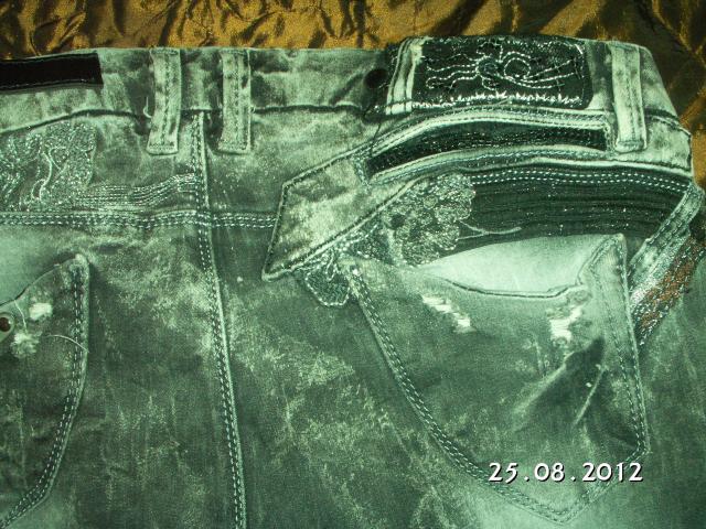Pilki baltai blukinti dzinsiukai. Pasiuvineti. Siek tiek tamposi. Zemu liemeniu.Be defektu.