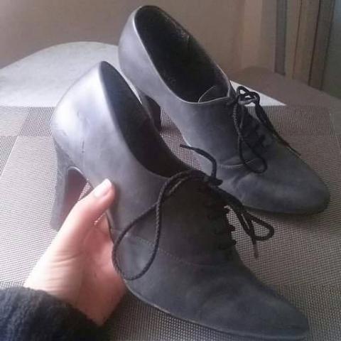 Pilki odiniai batai su kulnu