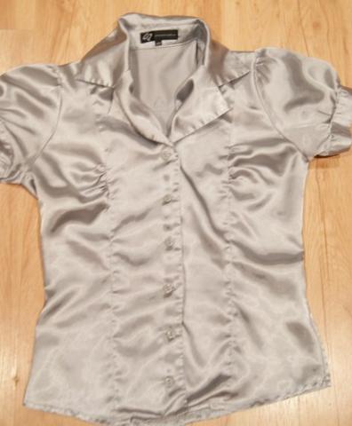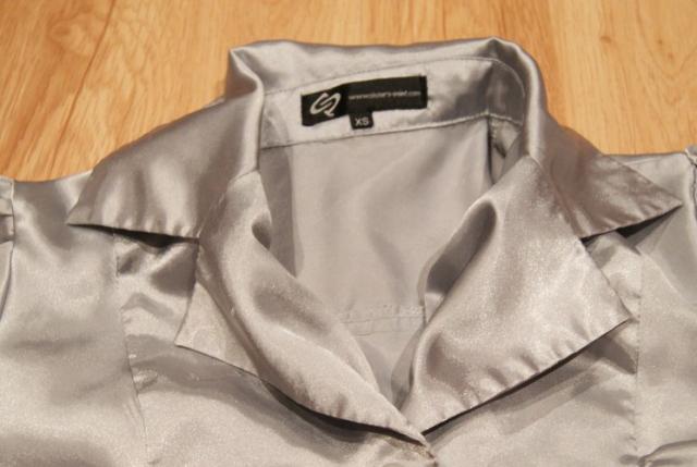 Pilki šilkiniai marškinukai su įdomia apykakle