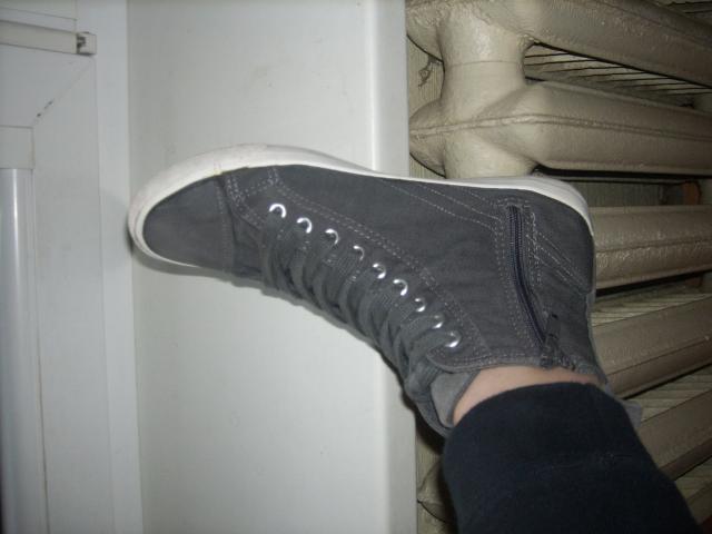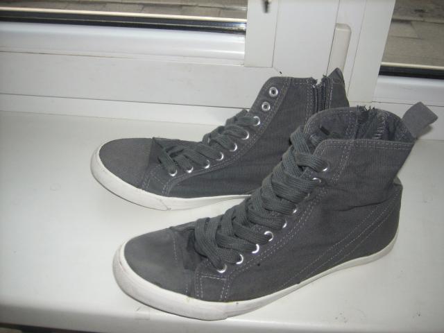 Pilki sporbačiukai, neapsibraižę ,nenutysioti, švarūs, dėvėti tik kelis kartus, bet turi defekčiukų, matyt brokuotas batas papuolė. Besegant nutrūko užtrauktukas, bet susiuvau tą vietą (pavaizduota foto) ir šniuriukas,manau defektai tikrai pataisomi. Todėl kaina ir žema, pirkti New Yorker parduotuvėj. Dydis 39-40 Daugiau info į AŽ