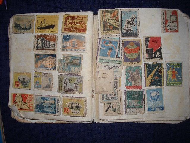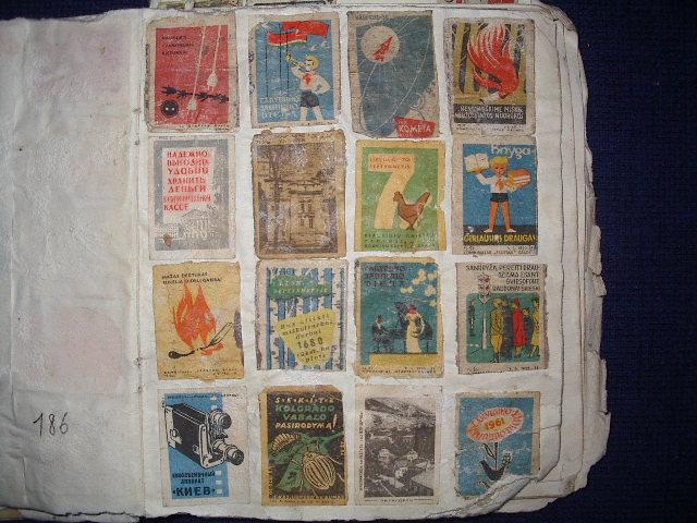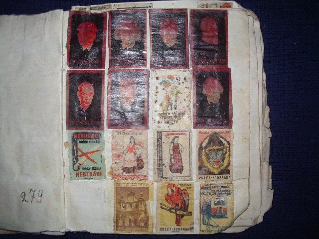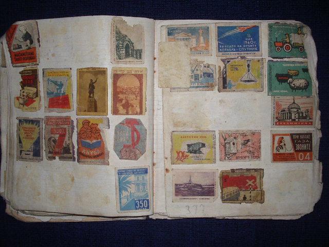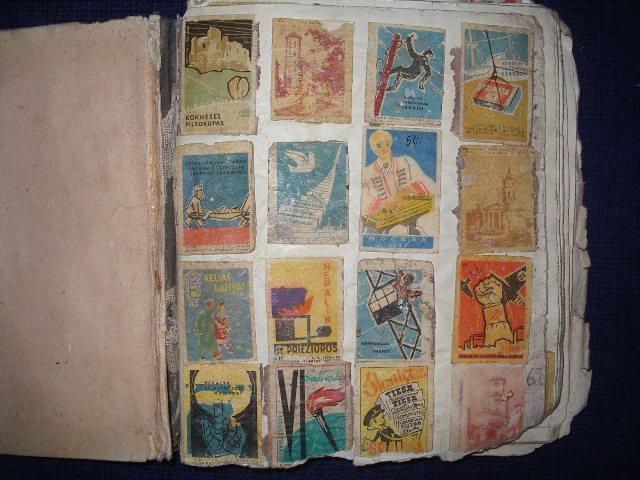 Pilnas kolekcinis sąsiuvinis degtukų dėžučių viršelių.
