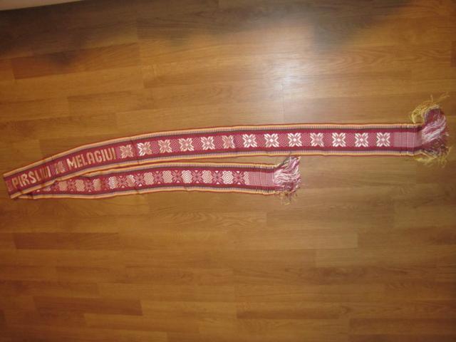 Trys skirtingos piršlio juostos. Po 4,34 EUR (15 Lt). Vieną iš jų, siauriausią, reikėtų pasitvarkyti (susiverti ištrauktus kutosus, todėl ją vertinu 1,45 EUR (5 Lt)).