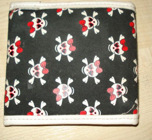 Piniginė nešiota, bet tikrai tinkama naudojimui ;}} dėl blico atrodo ,kad viduryje kaukolytės kitokios spalvos, bet taip nėra ;}