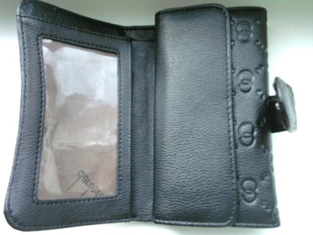 Juoda pinigine,labai faina,patogi.Vienoje vietoje knopkyte buvo iskritusi,bet dabar gerai suklijuota ir viskas tvarkoje.