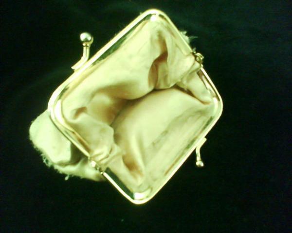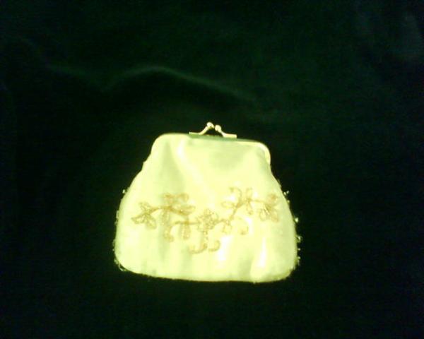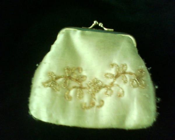 aukso spalvos piniginė, išsiuvinėta karoliukais