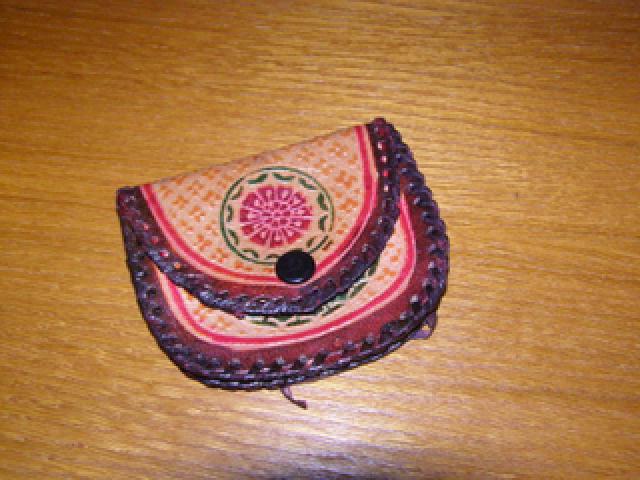 Piniginė su indiškais motyvais. apačioje šiek tiek praplyšusi, tačiau lengvai pataisoma