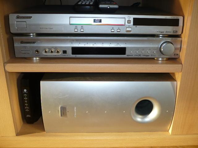 Groja garsiai,5 mazos koloneles (80w,8omu),1 bosas (35w,50/60hz),dvd grotuvas,garso sistema.Ja galima prijungti prie TV,dvd ar vcr grotuvo,taip pat galima naudoti kaip FM grotuva.