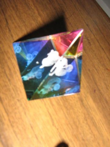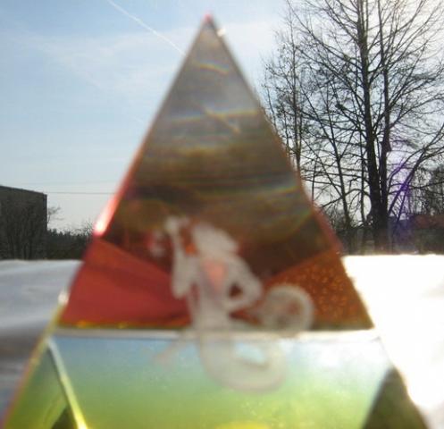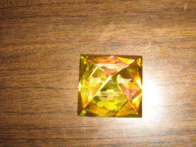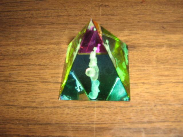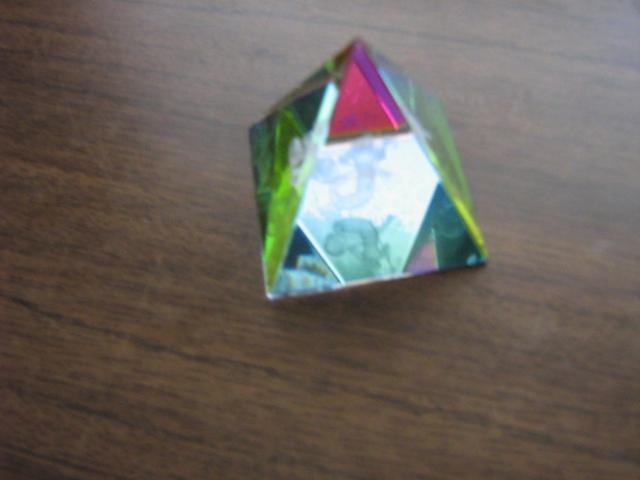 Stiklinė piramidė su vandenio ženklu.Man pačiai ji graži,bet nesu vandenis,ir nėra vandenių aplink tai nelabai..nedidukė,bet dailutė. aukštis truputį daugiau nei 4cm,plotis 4x4cm