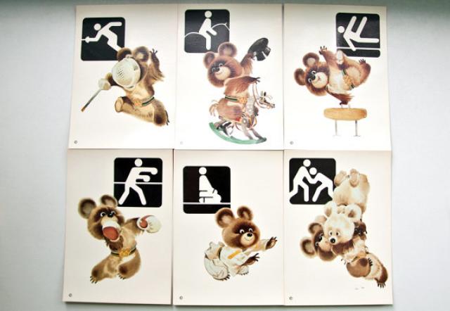 pirkčiau atvirutes su 80 - ujų olimpiada, kur pavazduotas meskiukas (pavazduota nuotraukoje). gal būti ir iš kitų miestų.