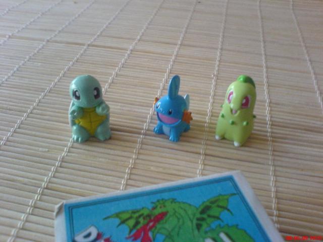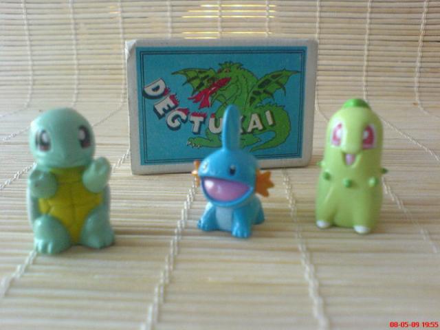 Trys draugai iš pokemonų pasaulio - mažyliai mažutėlyčiai, tinkami papuošti tavo pieštukų galiukams... Super smagūs mažiai :))) Tiesiog turim po kelis, tai ir siūlom pasimainyti :) Nuotraukose - iš kairės į dešinę : Švirkšlys, Makipas ir Čikorita.