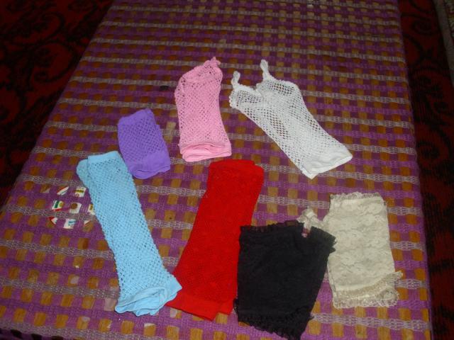 Įvairių spalvų neformalaus stiliaus pirštinaitės. Vienų kokybė geresnė, kitų vidutinė. Išmainyčiau į papuošalą, M dydžio korsetą. Turiu 7 poras iš viso.