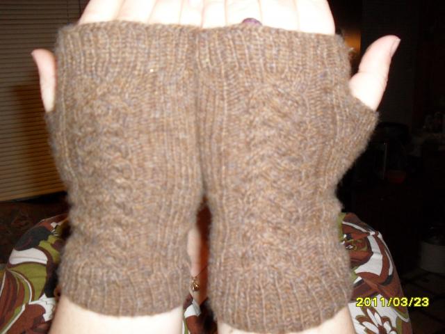 Pirštinukės be pirštukų. Tinka vairuojant automobilį, važinėjant dviračiu ar šiaip kai vėsus oras. Ilgis 18-19 cm. Riešo apimtis 18-20 cm. Kelis kartus dėvėtos.