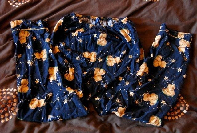 Pižama su meškukais :) Yra kelnės ir marškinukai. Puikiai tinka šiltam žiemos miegui :) dydis 38/40