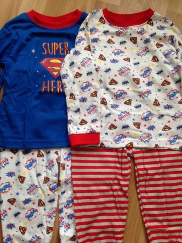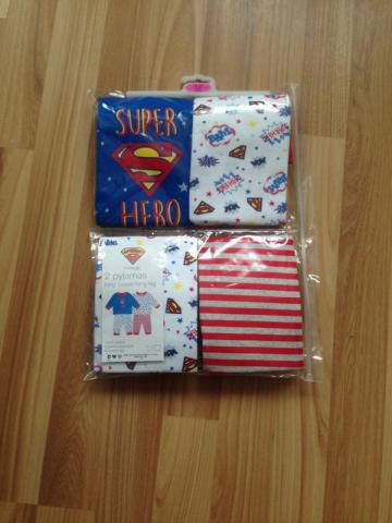 Pižamų komplektas "Super Hero". Naujas. Kaina už pakuotę (2 pižamos). Simpatiškas pižamų komplektas mažajam herojui. Kokybiškos, gerai nešiojasi, nesiburbuliuoja. 1,5 - 2 years, 86-92 cm, 100% medvilne Palaidines ilgis - 37 cm, rankoves ilgis - 31 cm, tarp pazastu- 33 cm Kelniu ilgis - 50,5 cm, nuo klynuko- 29 cm, liemuo - 21 cm Siunčiu